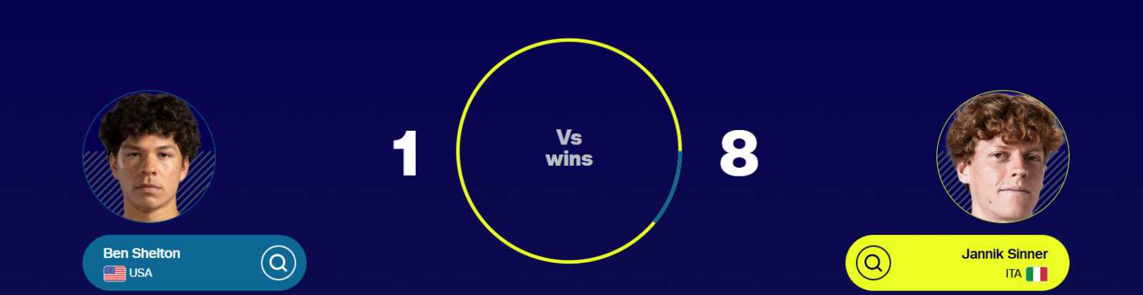 Шелтон и Синнер сыграли между собой уже 9 личных встреч. И здесь статистика для американца неутешительная. Итальянец ведет в очных матчах со счетом 8:1. Лишь самая первая дуэль соперников отметилась победой Бена. Потом же полная инициатива на стороне Янника была.